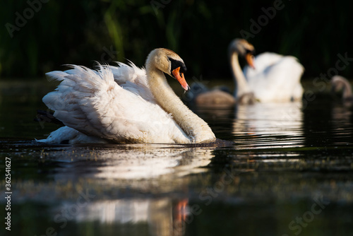 Obraz premium Male of Mute Swan on a water at dawn. His Latin name is Cygnus olor.