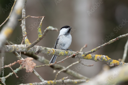 © edward-m, Fototapeta premium Male of willow tit (Poecile montanus) singing on a branch in early spring