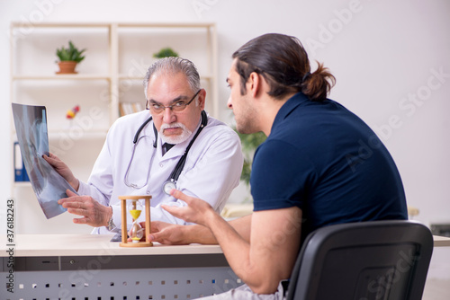 Obraz premium Male patient visiting doctor radiologist in time management conc