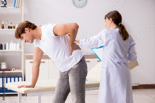 Obraz premium Male patient visiting young female doctor chiropractor