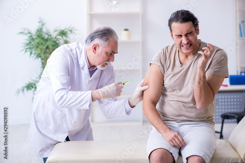 Fototapeta premium Male patient visitng doctor for shot inoculation