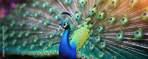 © iwaart, Fototapeta premium Male Peacock Displaying Feathers in a Natural Setting