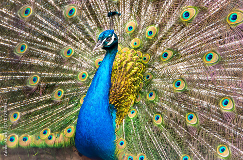 Obraz premium Male peacock with beautiful feathers close-up