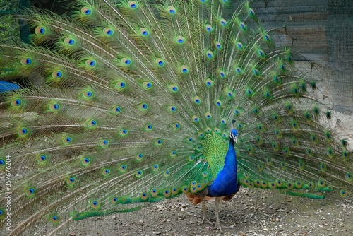 Obraz premium male peacock with feather fan