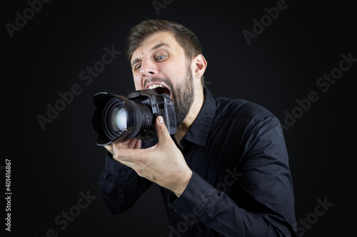 © Roman, Fototapeta premium male photographer bites the camera