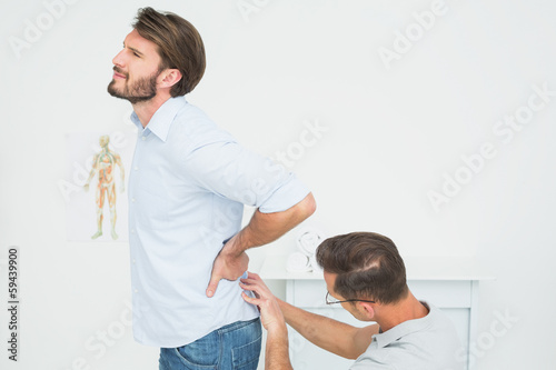 Fototapeta premium Male physiotherapist examining man's back