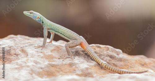 © Alta Oosthuizen, Naklejka premium Male Platysaurus lizard on a rock in Mapungubwe, South Africa.