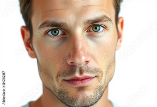 © iushakovsky, Fototapeta premium Male portrait with neutral expression on white background