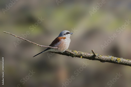 Fototapeta premium Male red-backed shrike - Lanius collurio on a branch in the sunlight.