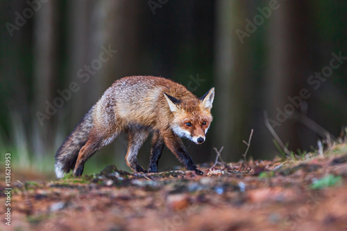 Obraz premium male red fox (Vulpes vulpes) goes after the prey