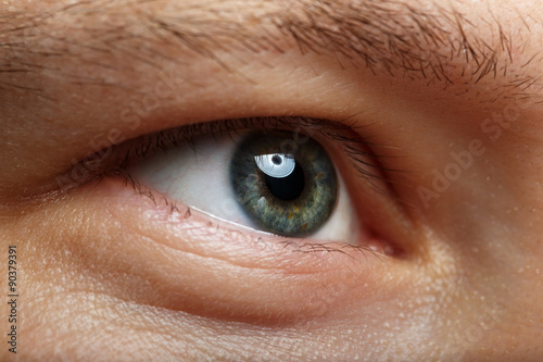 © megaflopp, Naklejka premium Male right green eye extreme closeup