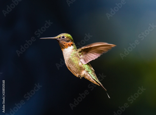 © Hummingbird Art, Obraz premium Male Ruby throated humming bird in flight.