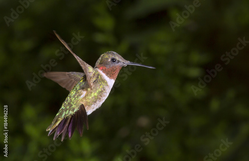 Fototapeta premium Male ruby-throated hummingbird (Archilochus colubris) flying, Georgia, USA