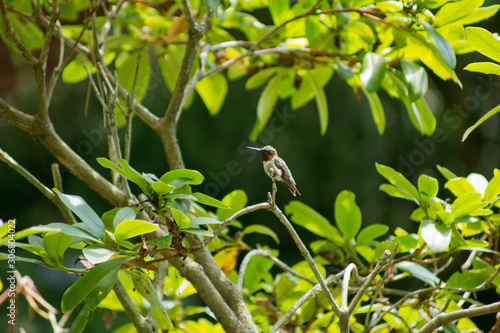 © Laura Rachfalski, Fototapeta premium Male Ruby-Throated Hummingbird Sitting on Branch Looking Left