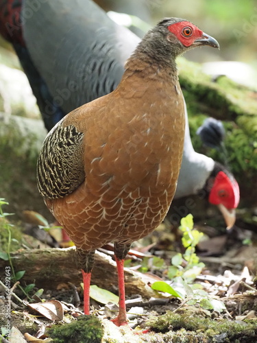 © Jatuporn, Fototapeta premium Male Silver Pheasant beside a small pond. Around a small pond there were rocks. There is moss on the rock.