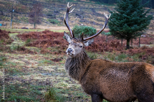 © ellenamani, Obraz premium Male stag head tilted looking at the camera