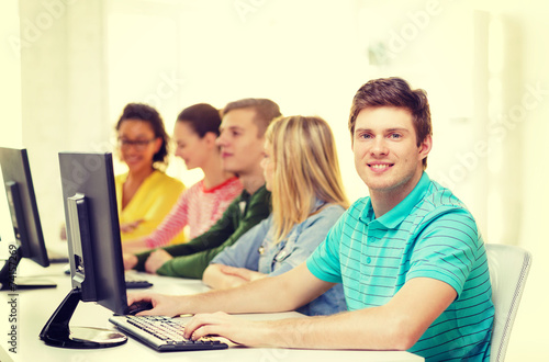 © Syda Productions, Fototapeta premium male student with classmates in computer class