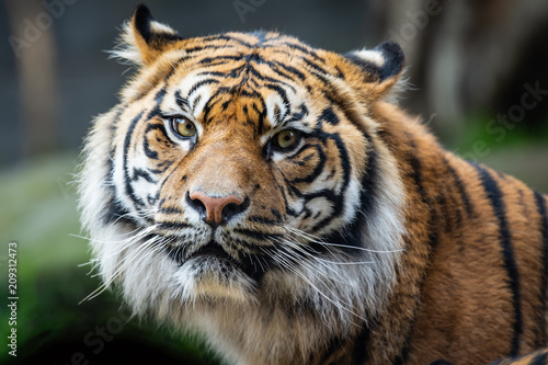 Fototapeta premium Male sumatran tiger in front of a rocky background