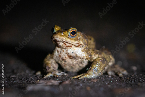 Fototapeta premium Male toad (Bufo bufo) on a path at night