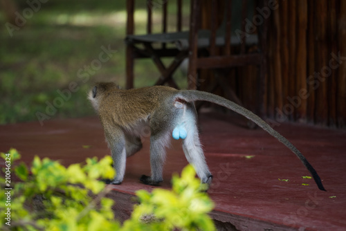 © ilyaska, Naklejka premium Male vervet monkey with blue scrotum