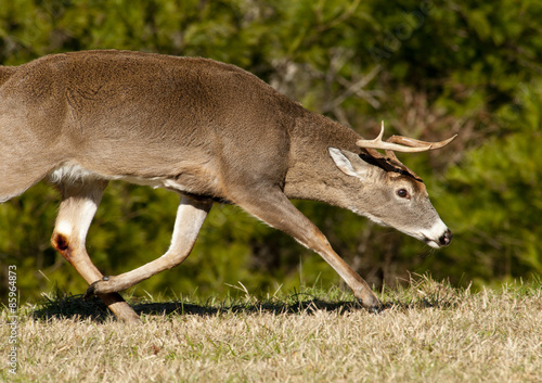 © bettys4240, Fototapeta premium Male White tailed buck with horns pointed and ears down ready to fight.