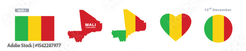 Fototapeta premium mali flag and map set. mali flag in official colors and proportions. independence day 12 december , map, circle and heart shaped mali