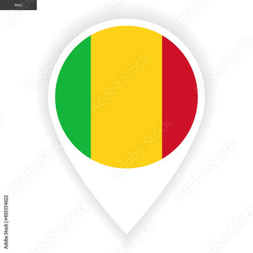 © Studio101, Fototapeta premium Mali marker icon with white border isolated on white background. Mali pin icon with shadow on white background.