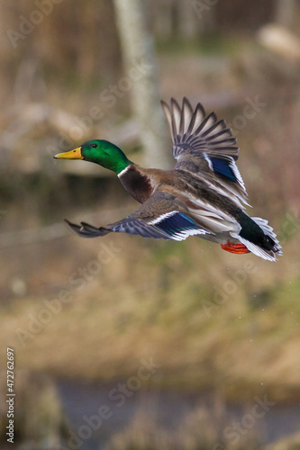 © Danita Delimont, Obraz premium Mallard drake taking flight