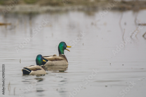 Obraz premium Mallard drakes swimming in lake