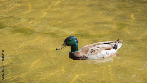 Fototapeta premium Mallard duck floats on water