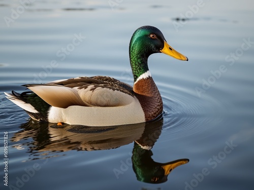 Fototapeta premium Mallard Duck on Calm Water Reflection
