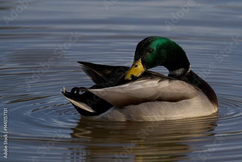© Wirestock, Fototapeta premium Mallard Duck Preening on a Lake