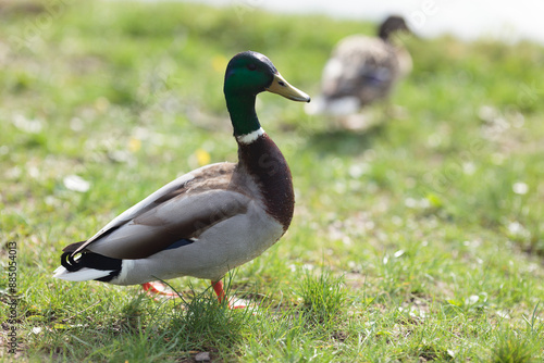 Obraz premium Mallard duck standing on grass