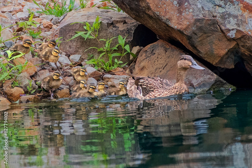 © stuckreed, Fototapeta premium Mallard Hen Leading Her Brood into the Water