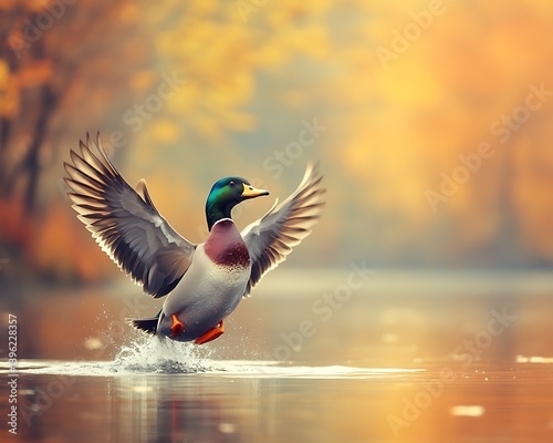 © Karo, Fototapeta premium Mallard Landing Autumn