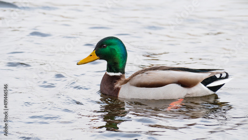 Fototapeta premium Mallard male is swimming on the water. Duck portrait