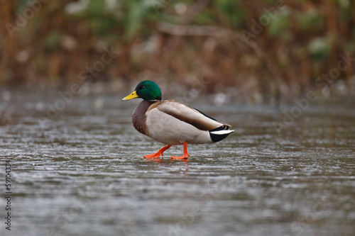 © wildphoto4, Fototapeta premium Mallard on icy pond