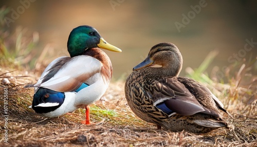 © Route66, Obraz premium mallard wild ducks scient. name Anas platyrhynchos bird animal, AI generated
