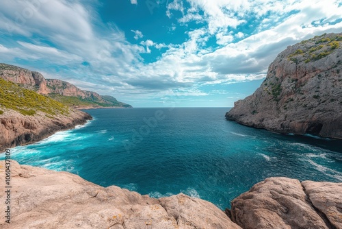 Fototapeta premium Mallorca, Capdepera, Cala Mesquida-Cala Agulla, Wanderweg, wandern, Tour. Beautiful simple AI generated image