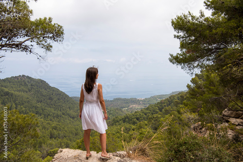 Naklejka premium Mallorca island. Young woman in Mallorca mountains.