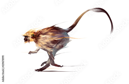 © khius, Naklejka premium malowana małpa biegająca na białym tle