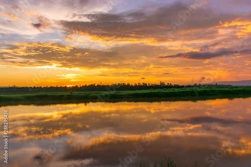 © Sitthipong, Fototapeta premium Malowniczy Widok Dramatycznego Nieba Podczas Zachodu Słońca