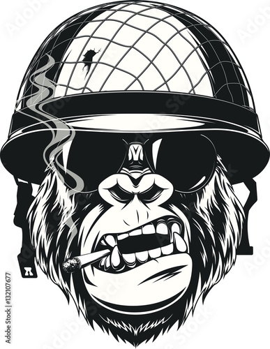 Naklejka premium Małpa żołnierz z papierosem