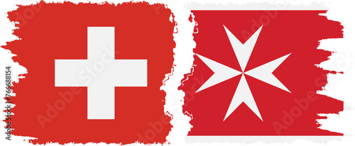 © gladder, Fototapeta premium Malta and Switzerland grunge flags connection vector