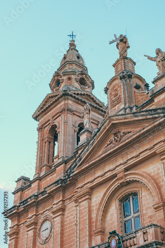 © chronisyan, Fototapeta premium Maltese church architecture close up sunset