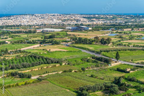 Naklejka premium Maltese landscape. View from Mdina mediaval city.