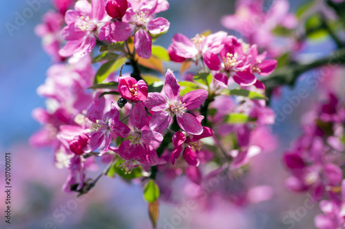 © Iva, Obraz premium Malus royalty, ornamental apple tree, springtime, purple pink flowers on branches