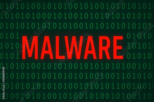 © Amith, Fototapeta premium Malware Cybersecurity Threat Concept with Binary Code Background.