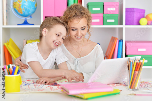 © aletia2011, Fototapeta premium Mama i syn robią lekcje