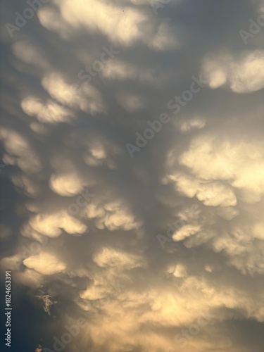 Obraz premium Mammatus clouds at sunset sky with pastel colors and dramatic tones